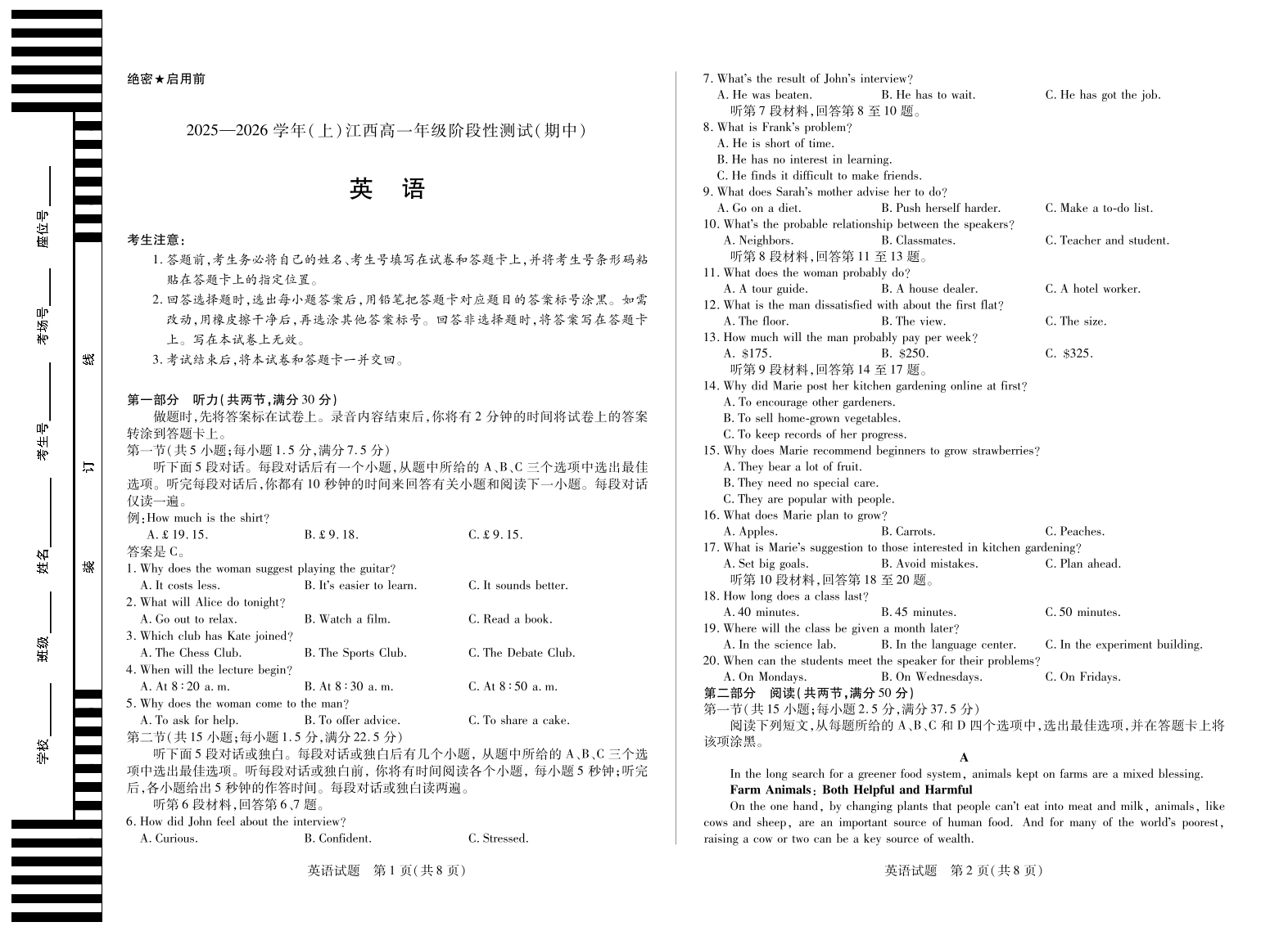 英语江西高一上期中.pdf