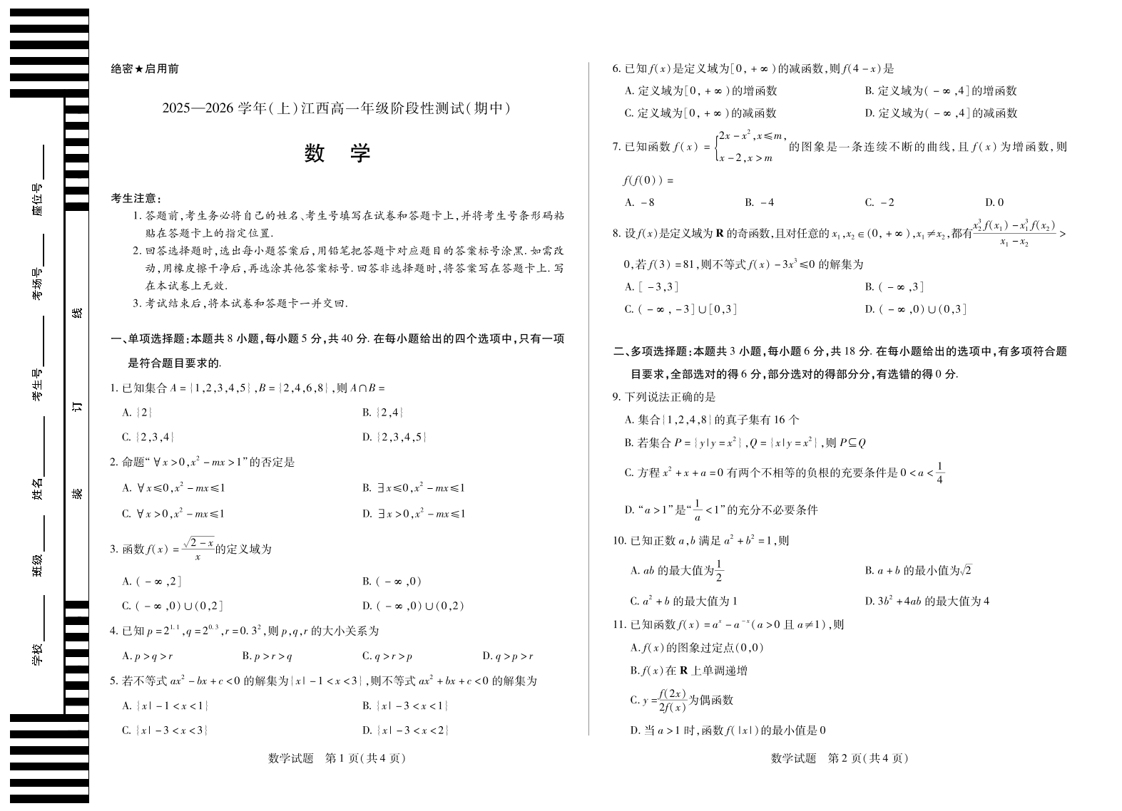 数学江西高一上期中改新.pdf