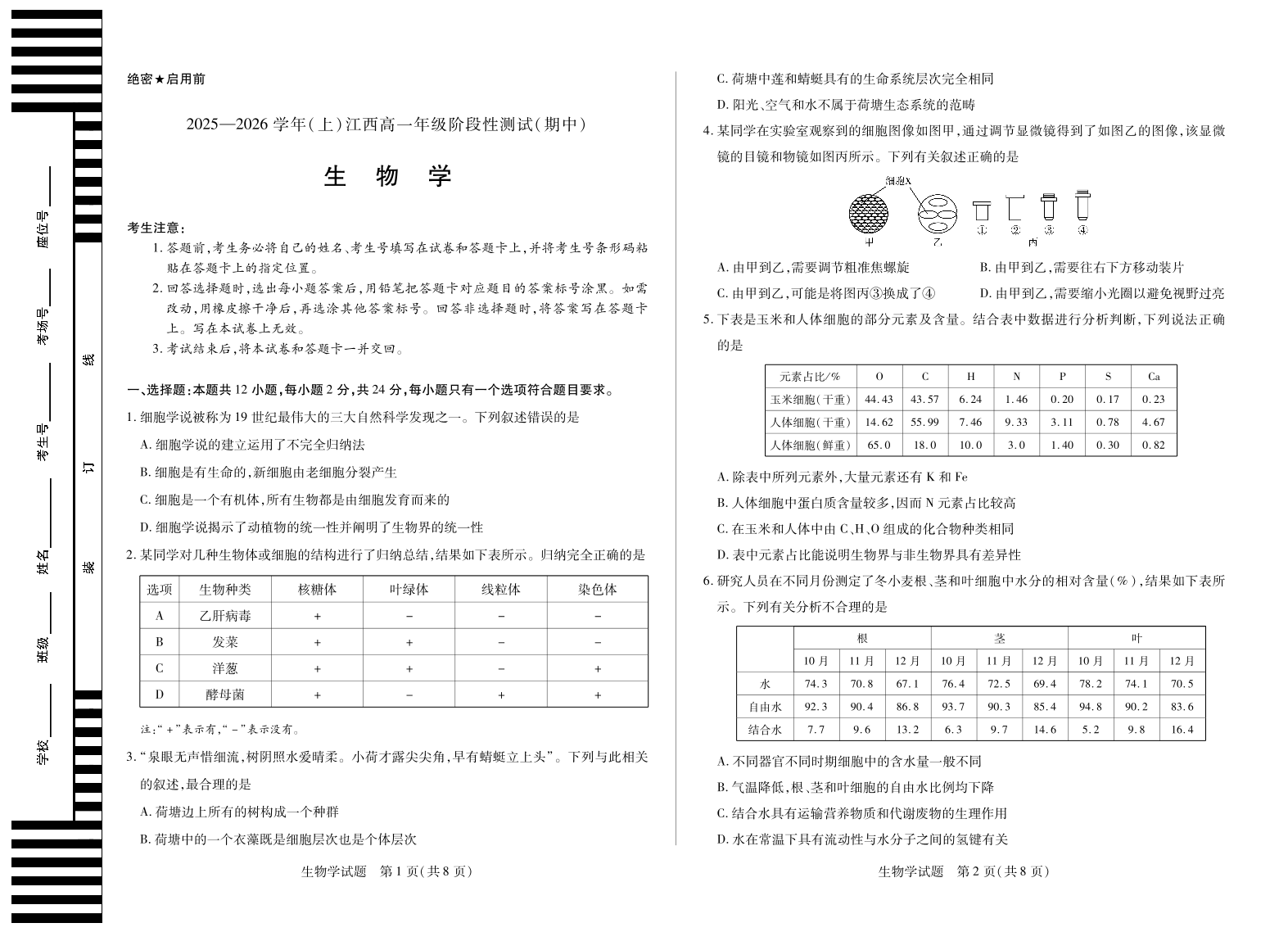 生物学江西高一上期中.pdf