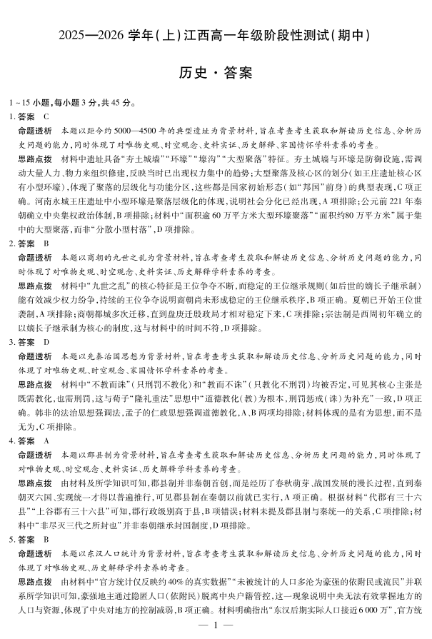 历史-江西高一上期中详细答案.pdf