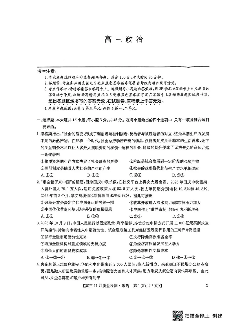 九师联盟2026届高三上学期11月联考 政治(X).pdf