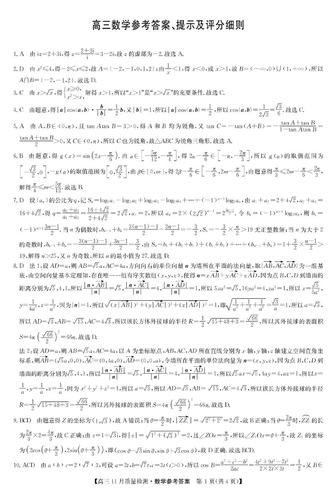 九师联盟2026届高三上学期11月联考 数学答案.pdf