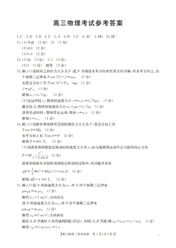陕西省西安市2026届高三上学期11月联考 物理答案.pdf