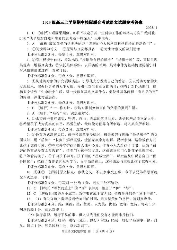日照市2023级高三上学期期中校际联合考试 语文答案.pdf