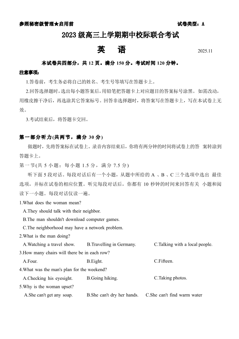 日照市2023级高三上学期期中校际联合考试 英语.pdf