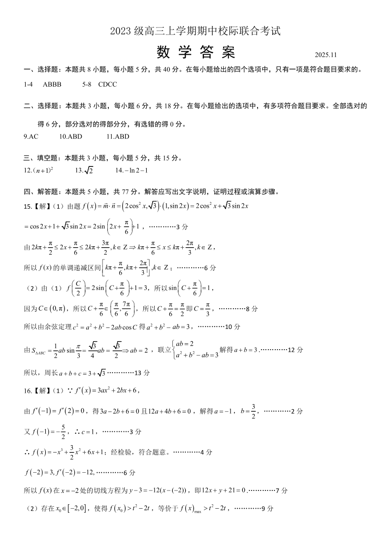 日照市2023级高三上学期期中校际联合考试 数学答案.pdf