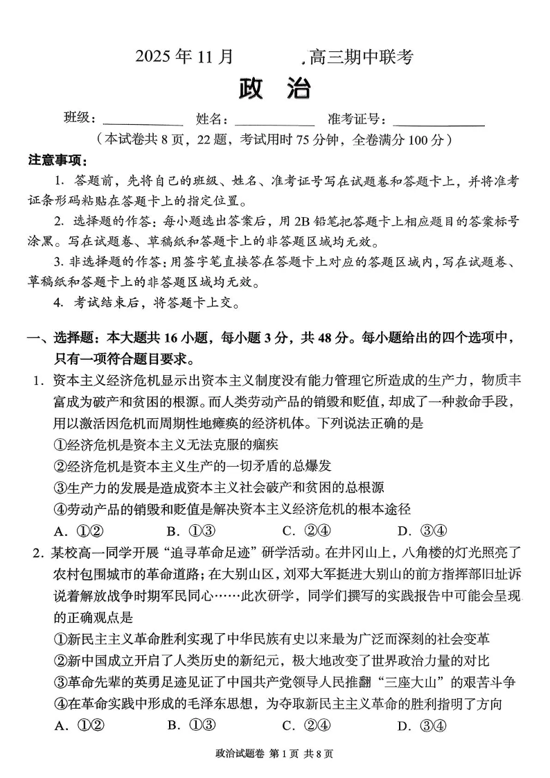 2025年11月A佳教育高三期中联考 政治.pdf