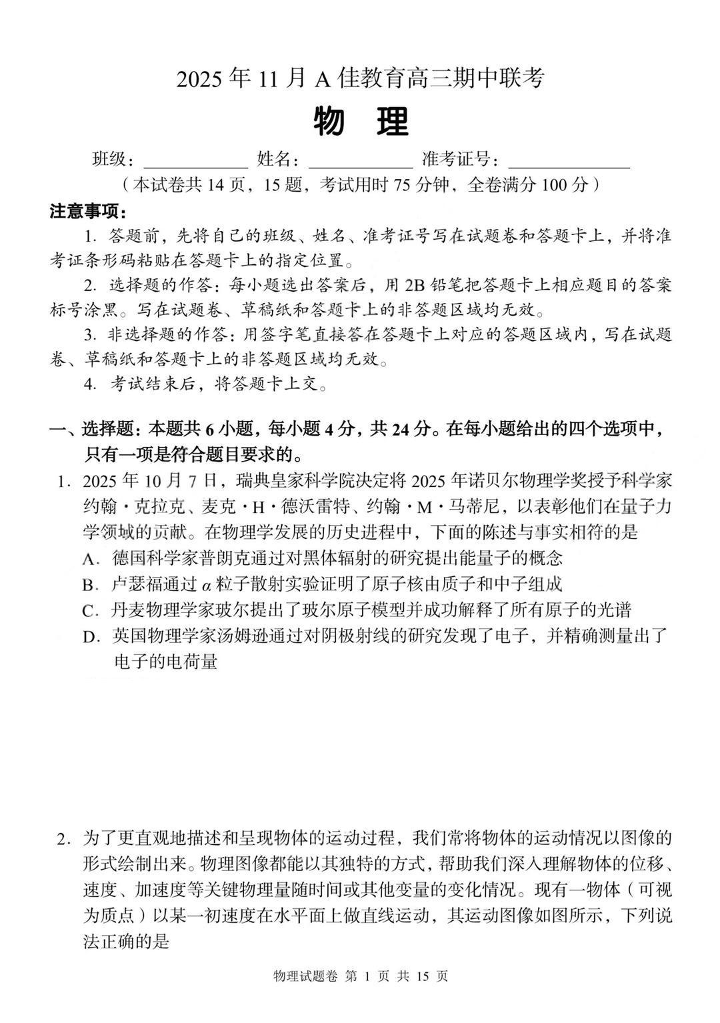 2025年11月A佳教育高三期中联考 物理.pdf