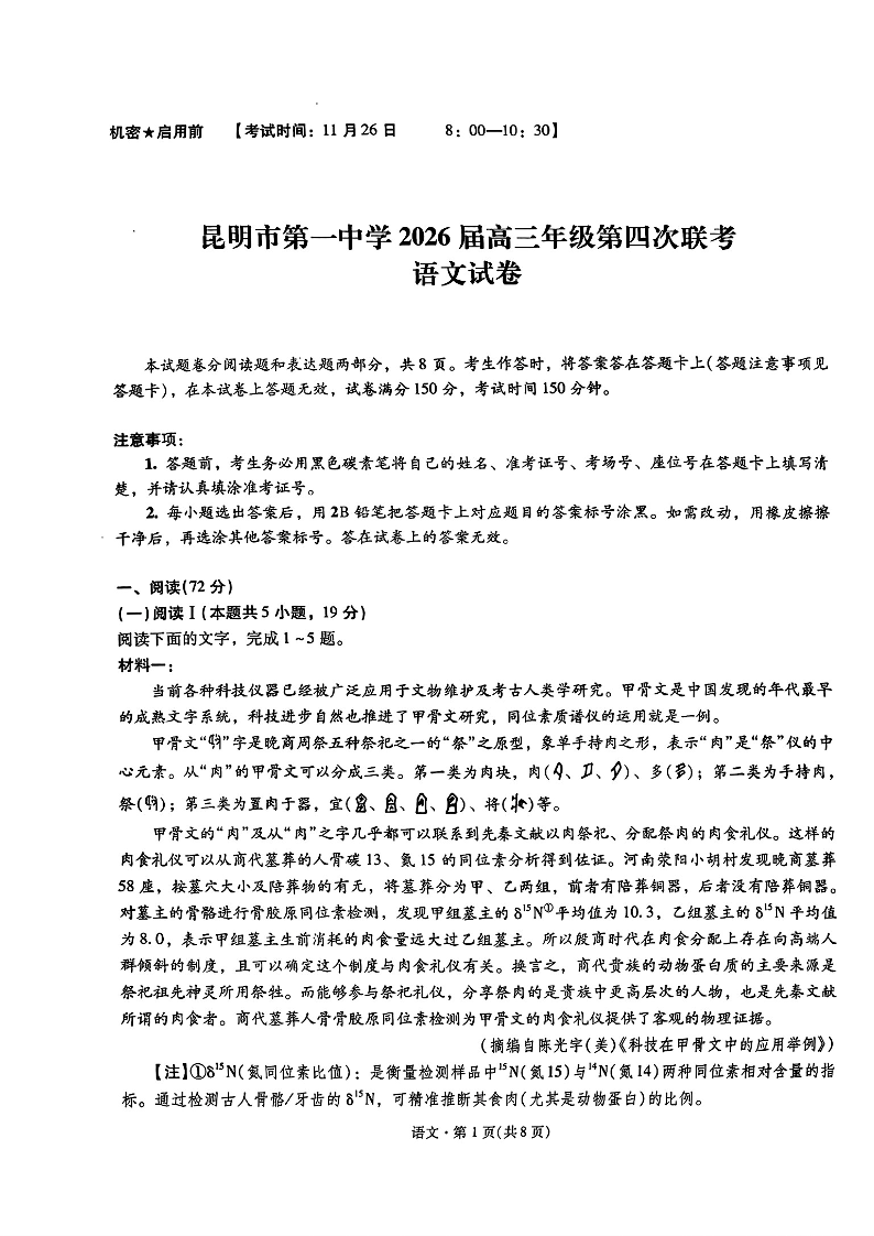 昆明市第一中学2026届高三年级第四次联考 语文.pdf