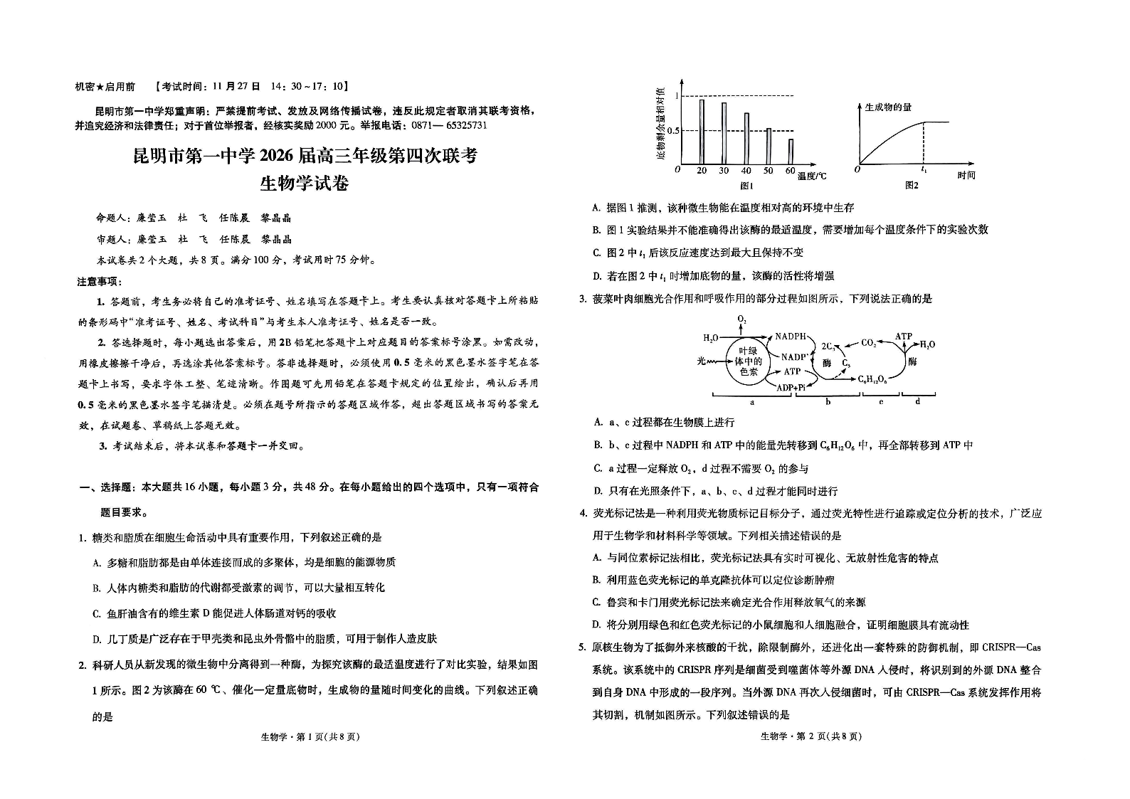 昆明市第一中学2026届高三年级第四次联考 生物.pdf
