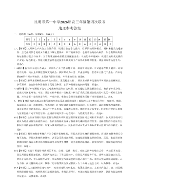 昆明市第一中学2026届高三年级第四次联考 地理答案.pdf