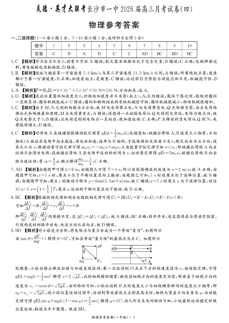 长沙市一中2026届高三月考试卷(四)物理答案.pdf