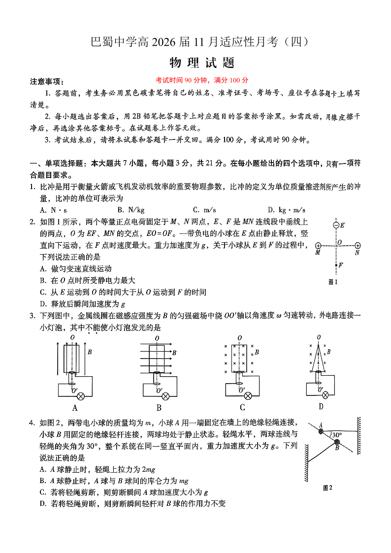 巴蜀中学2026届高考适应性月考卷(四)物理.pdf