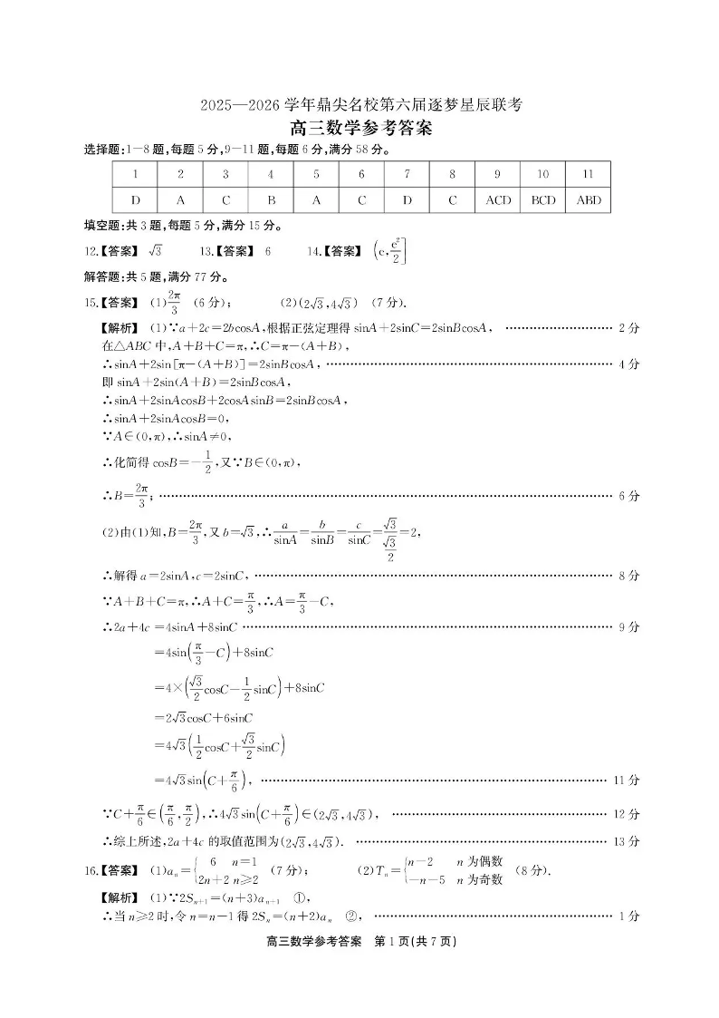 安徽省2025-2026学年鼎尖名校第六届逐梦星辰联考 数学答案.pdf