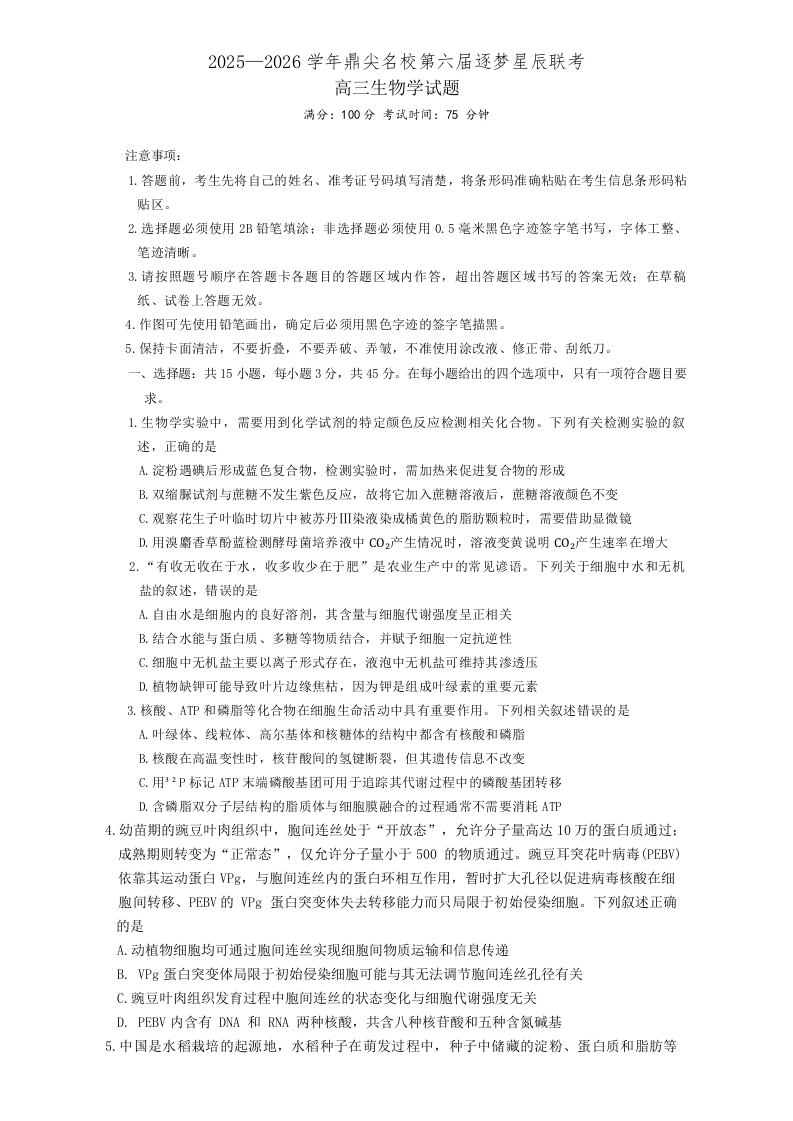 安徽省2025-2026学年鼎尖名校第六届逐梦星辰联考 生物.docx