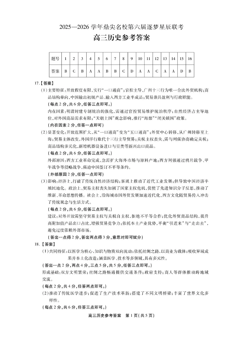 安徽省2025-2026学年鼎尖名校第六届逐梦星辰联考 历史答案.pdf