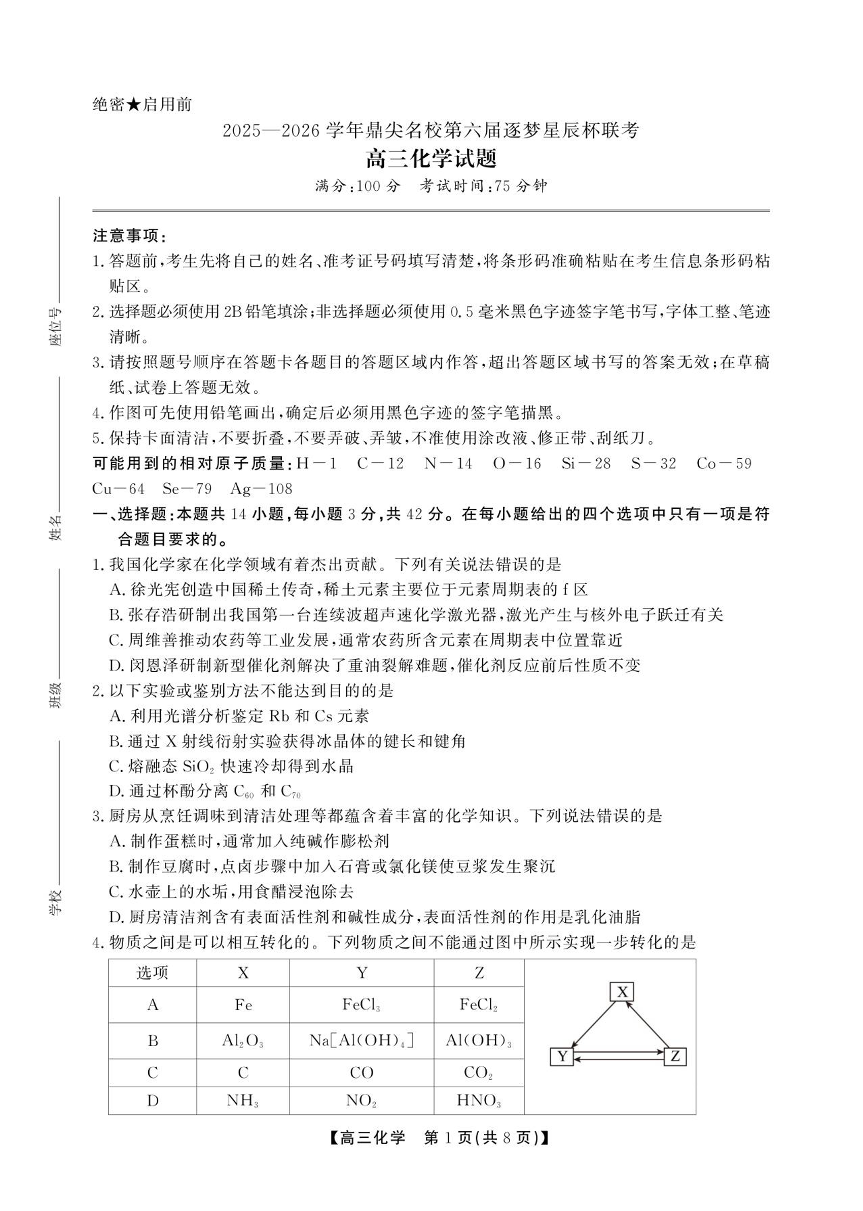 安徽省2025-2026学年鼎尖名校第六届逐梦星辰联考 化学.pdf