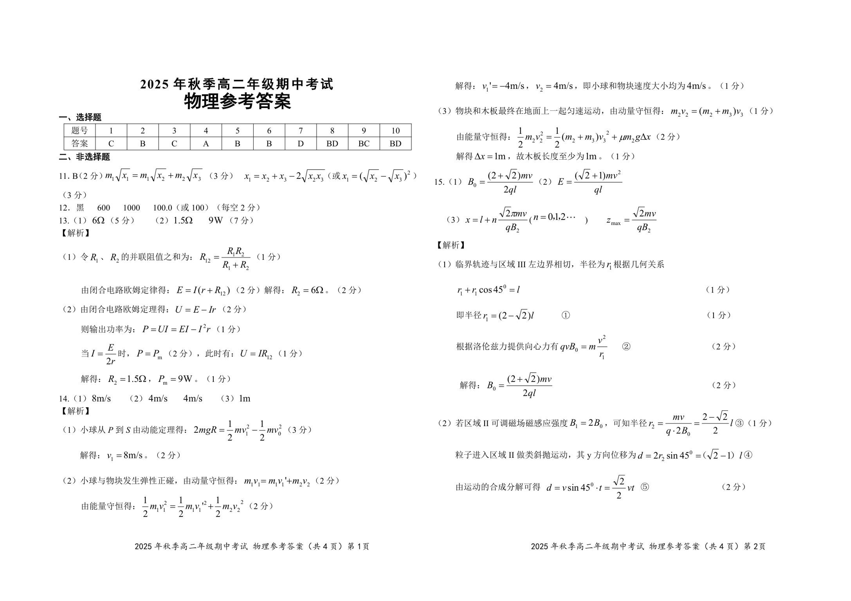 湖北省鄂东南省级示范高中教育教学改革联盟2025年秋季高二年级期中考试 物理答案.pdf