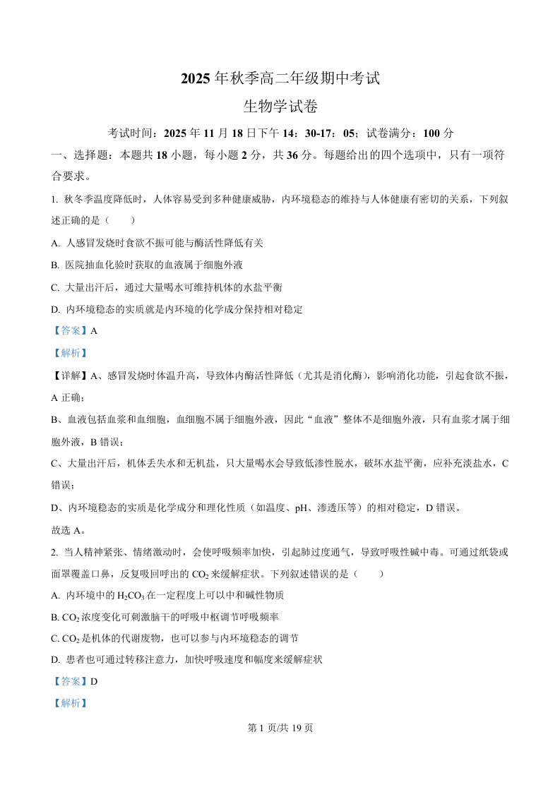 湖北省鄂东南省级示范高中教育教学改革联盟2025年秋季高二年级期中考试 生物答案.docx