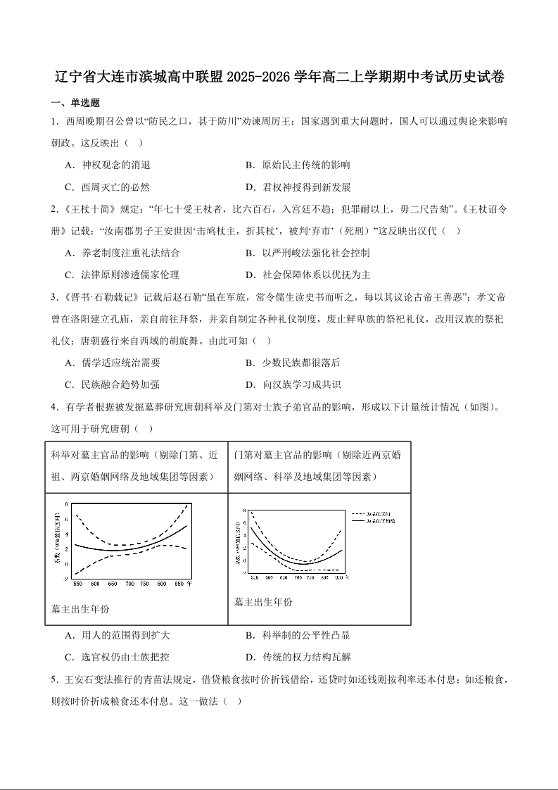 滨城高中联盟2025-2026学年高二上学期期中考试 历史试题(含答案).docx