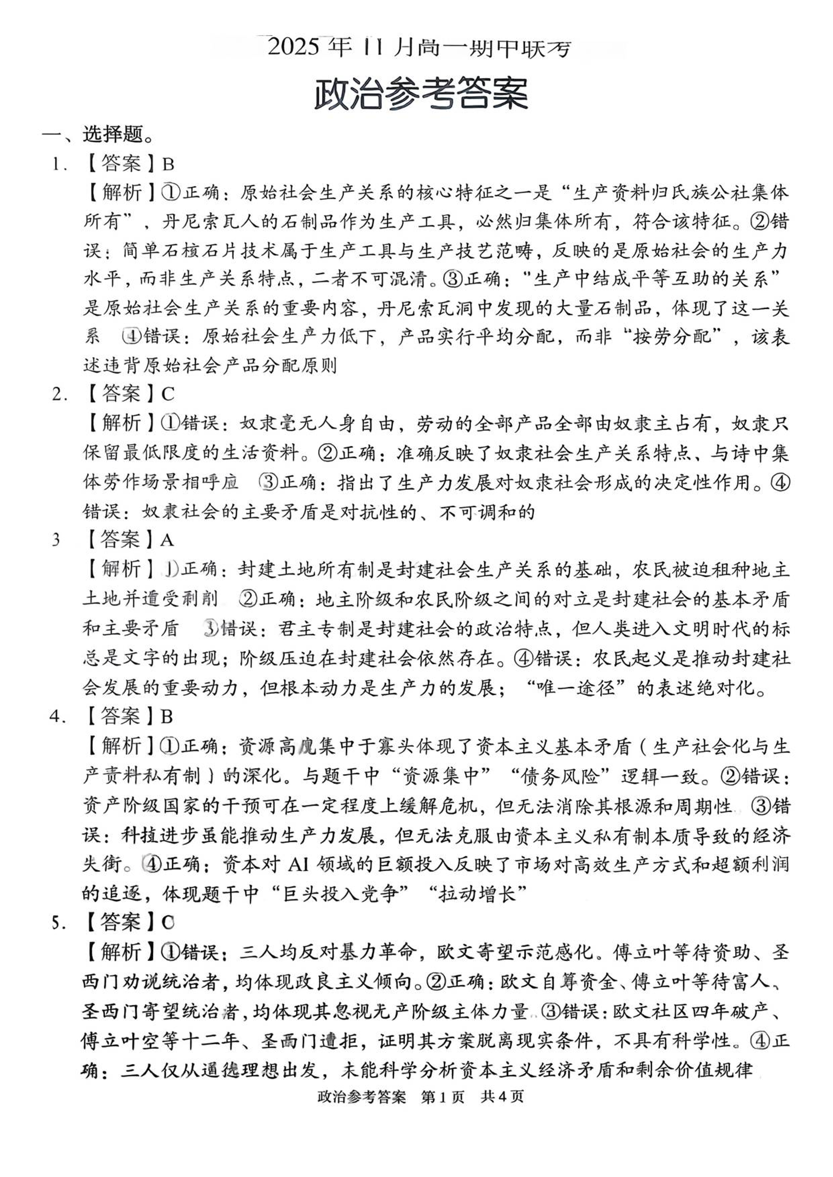 三新协作体2025年11月高一期中联考 政治答案.pdf