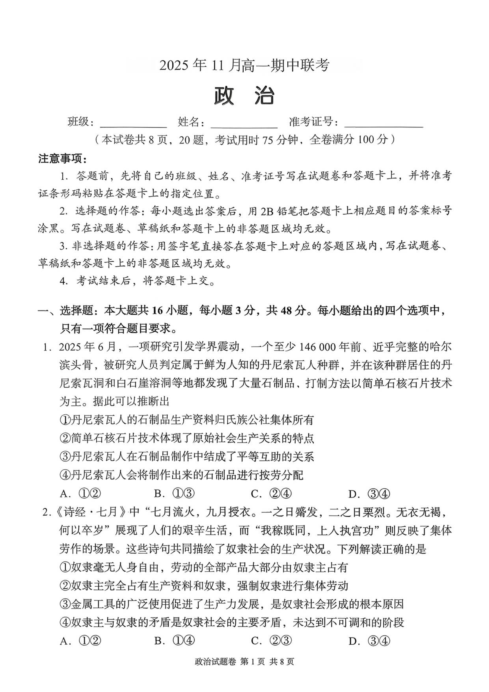 三新协作体2025年11月高一期中联考 政治.pdf