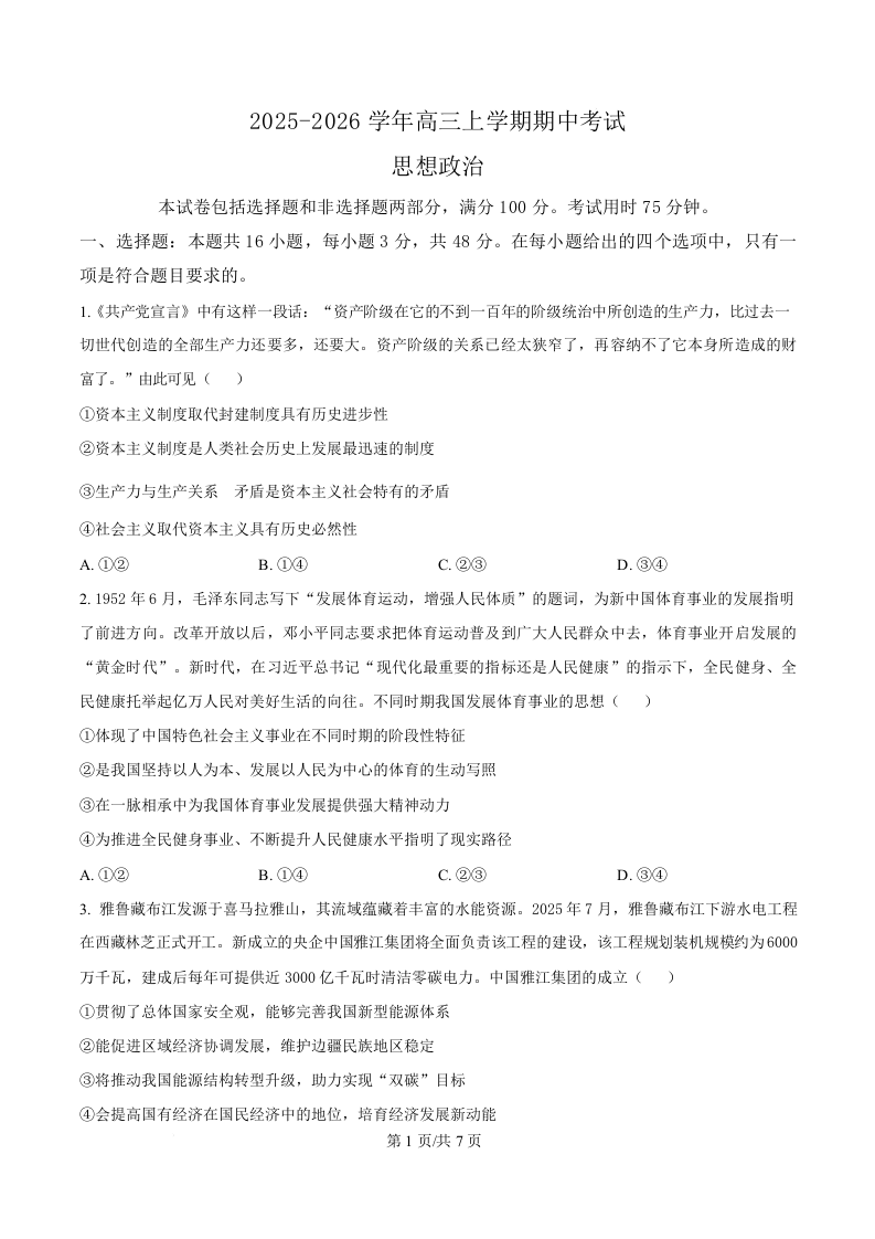 河北省承德市九校联考2026届高三上学期11月期中考试 政治.docx