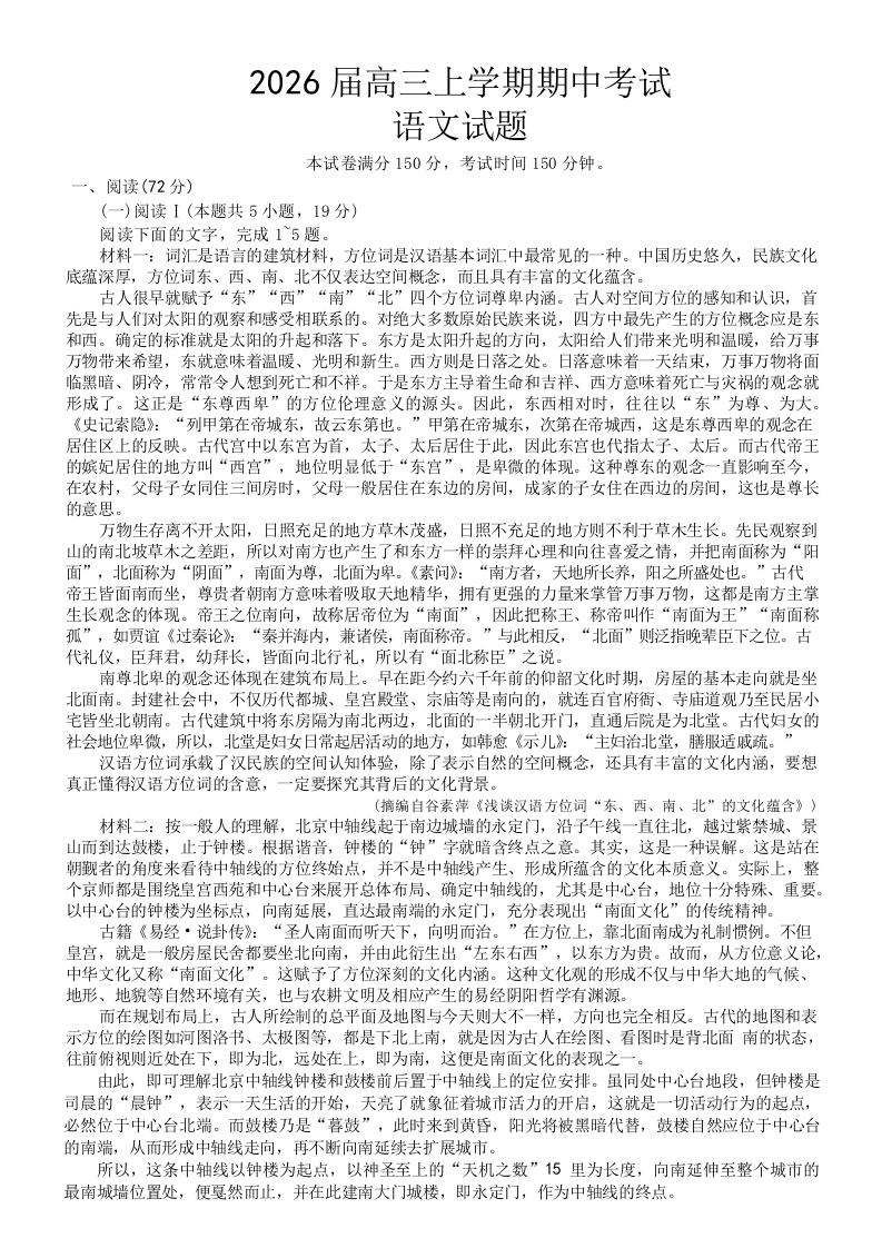 河北省承德市九校联考2026届高三上学期11月期中考试 语文.docx