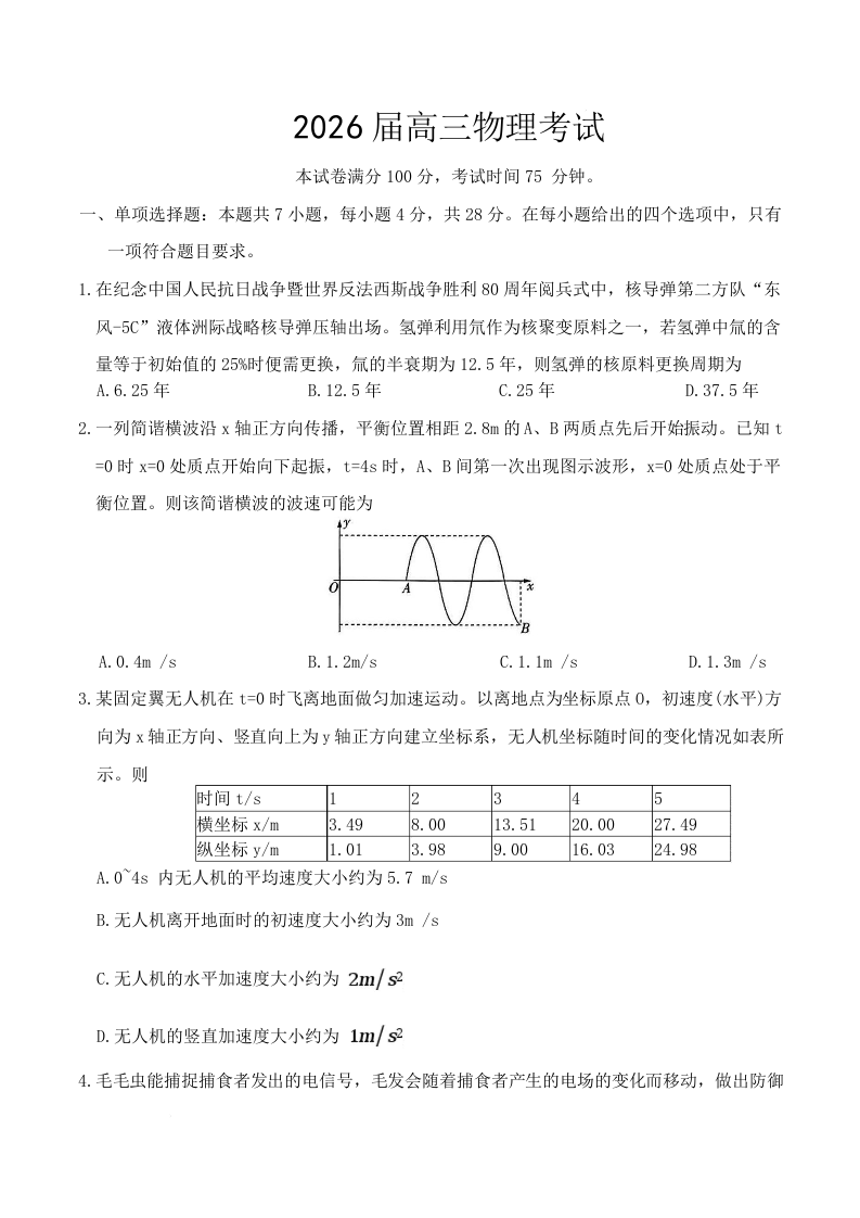 河北省承德市九校联考2026届高三上学期11月期中考试 物理试题(含答案).docx