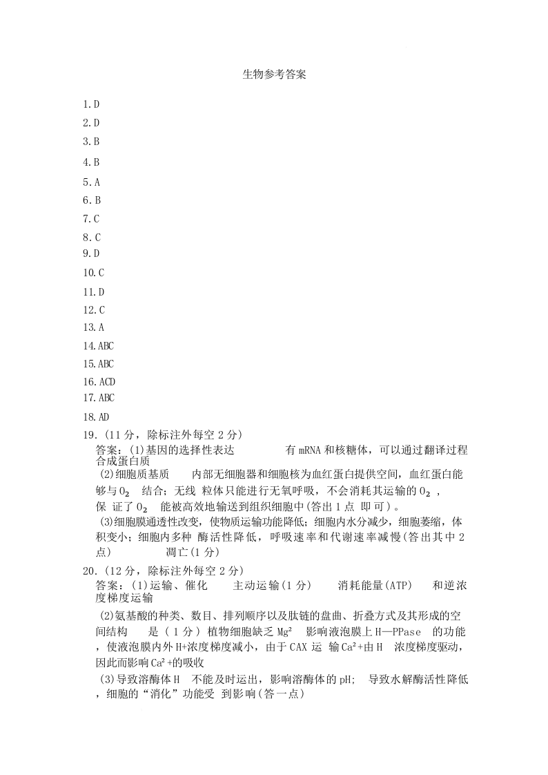 河北省唐山市十校2025-2026学年高三年级上学期期中考试 生物答案.docx