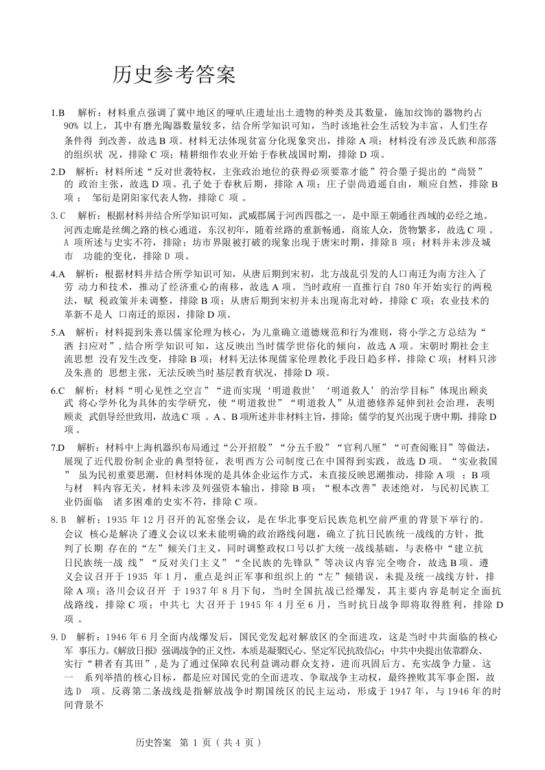 河北省唐山市十校2025-2026学年高三年级上学期期中考试 历史答案.docx