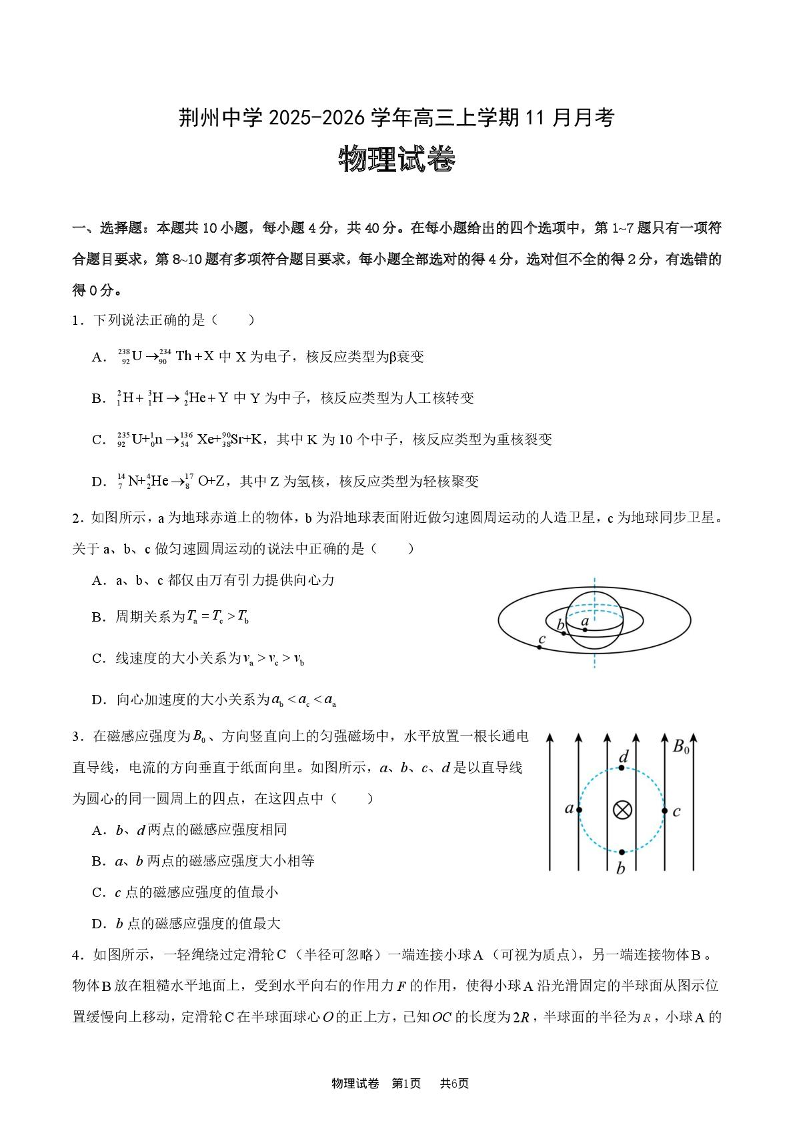 荆州中学2025-2026学年高三上学期11月月考 物理.pdf