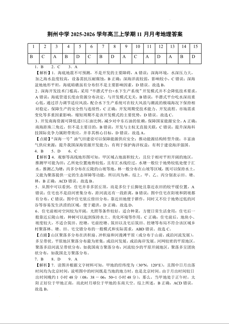 荆州中学2025-2026学年高三上学期11月月考 地理答案.docx