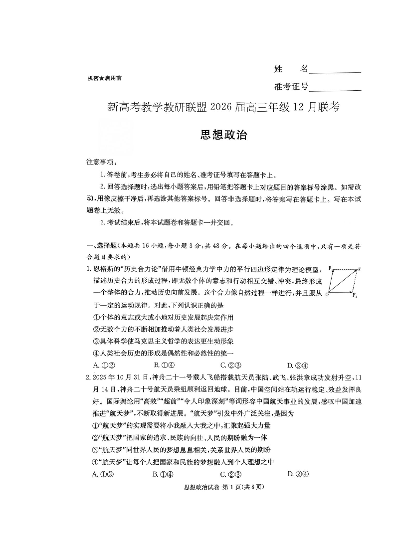 新高考教学教研联盟(长郡二十校)2026届高三年级12月联考 政治.pdf