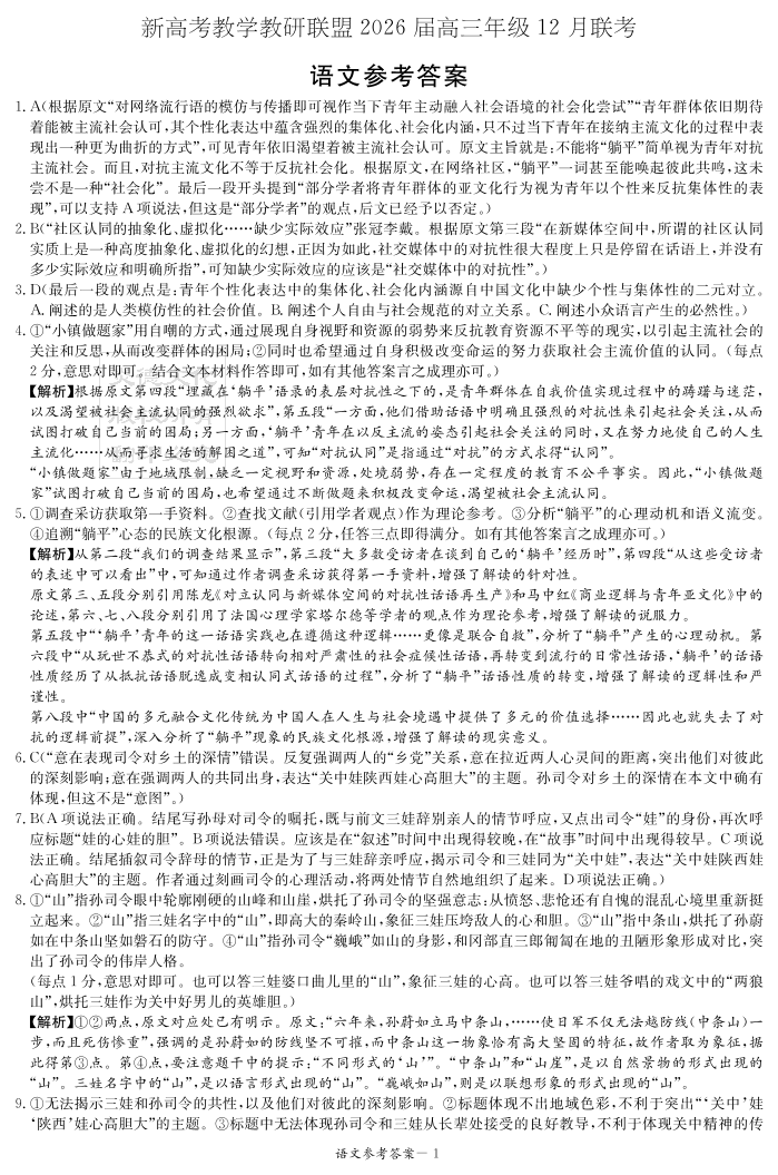 新高考教学教研联盟(长郡二十校)2026届高三年级12月联考 语文答案.pdf