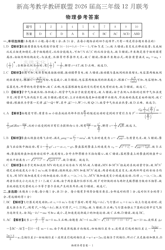 新高考教学教研联盟(长郡二十校)2026届高三年级12月联考 物理答案.pdf