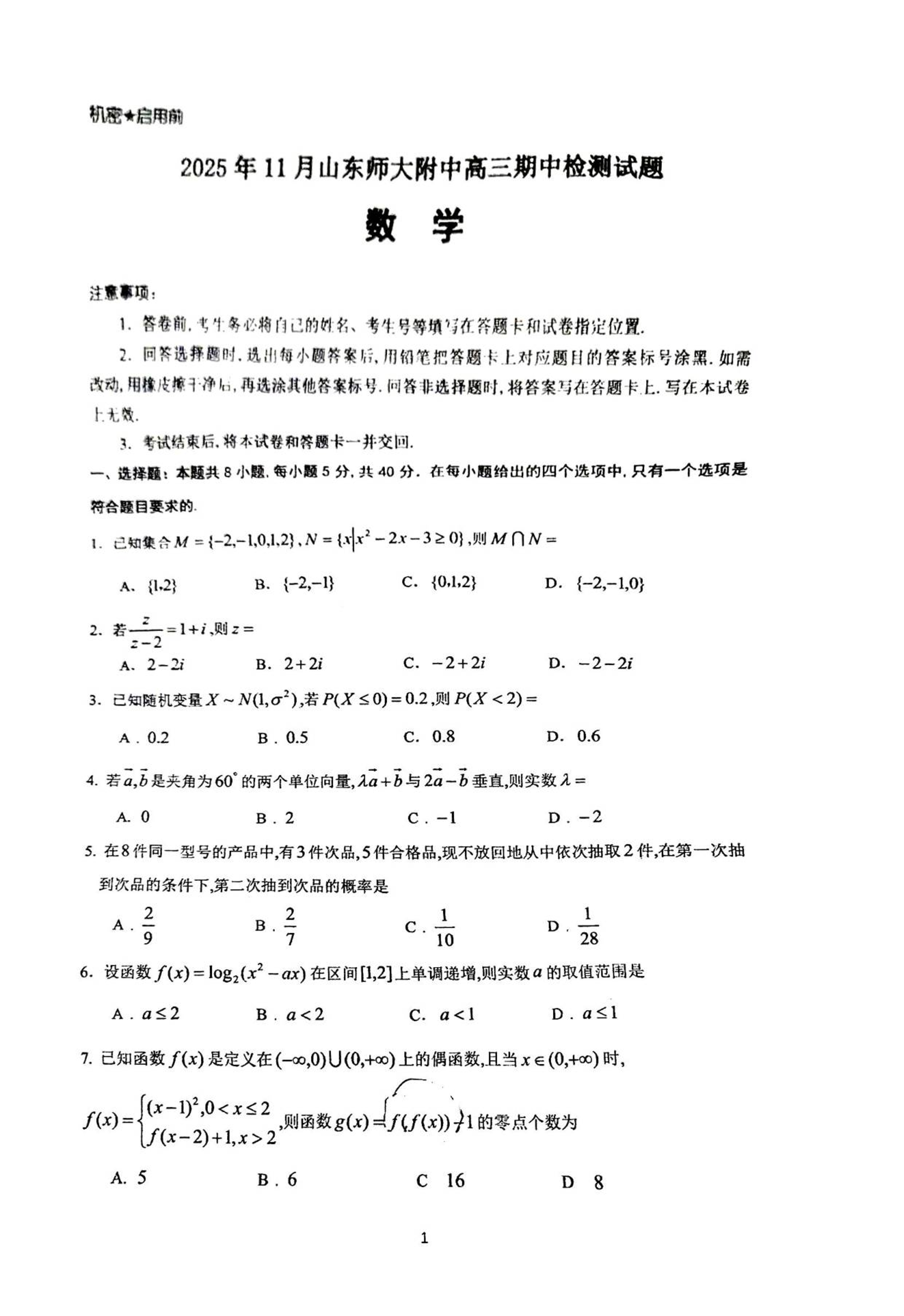 山东师大附中2025年11月高三期中检测 数学.pdf