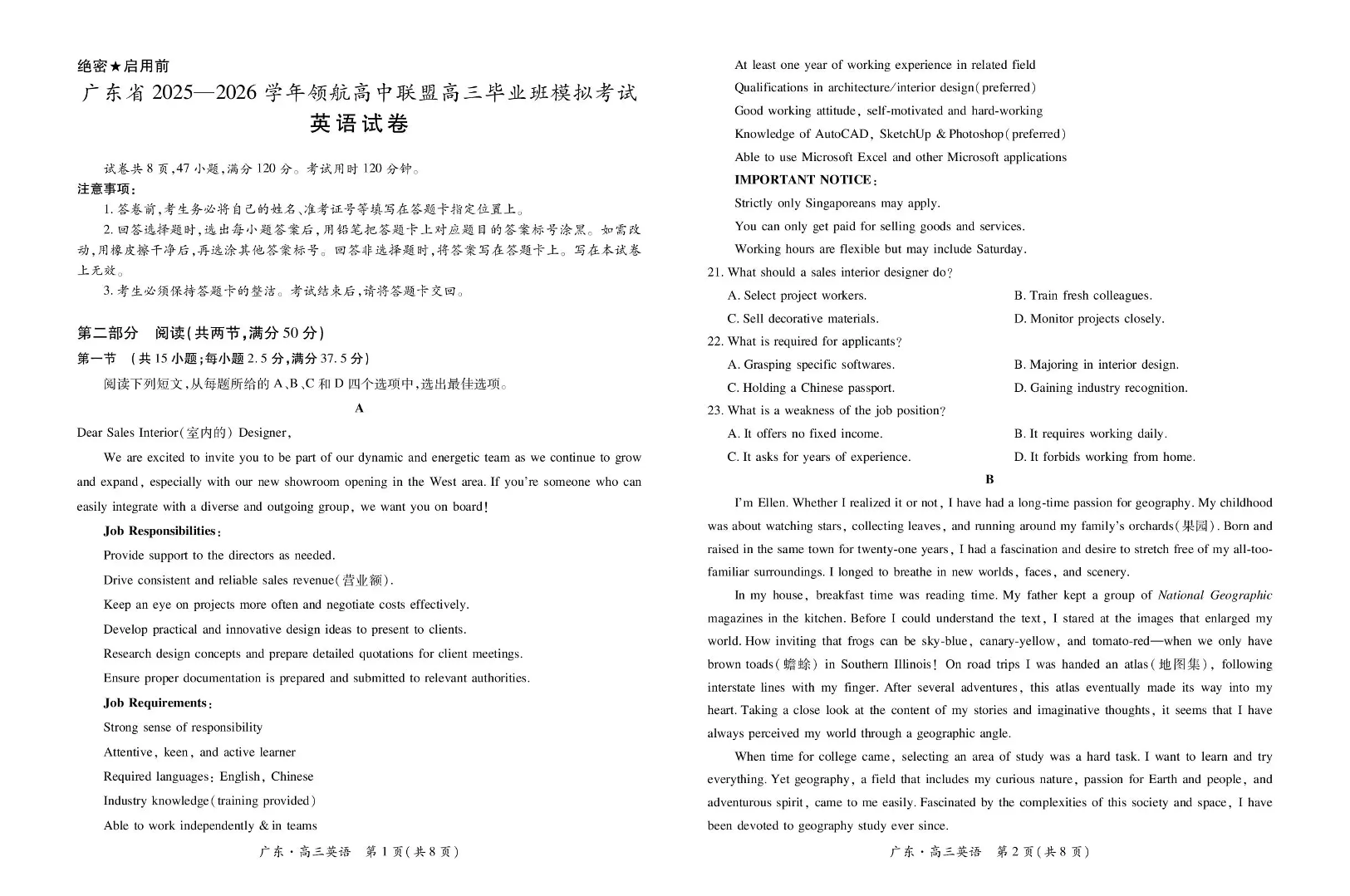 广东省2025—2026学年领航高中联盟高三毕业班模拟考试 英语.pdf