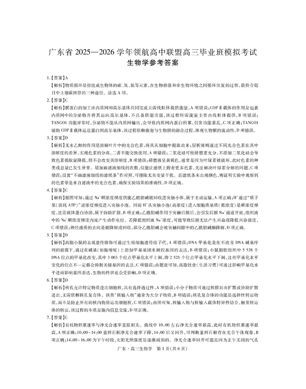 广东省2025—2026学年领航高中联盟高三毕业班模拟考试 生物答案.pdf