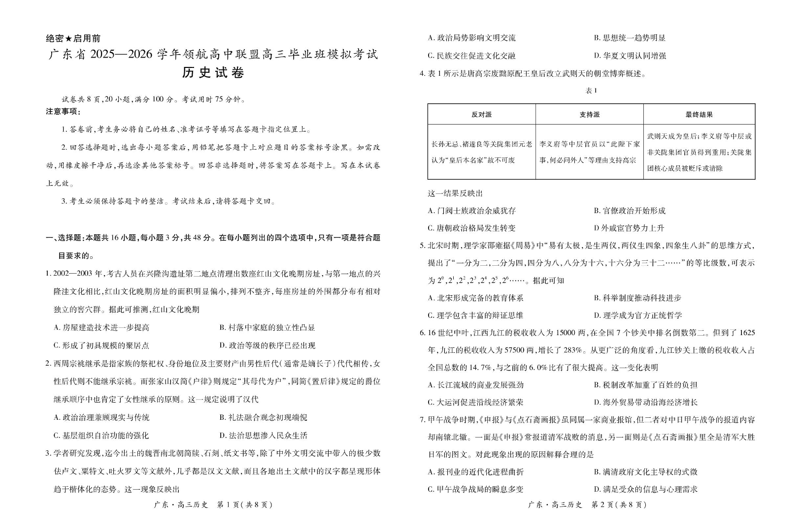 广东省2025—2026学年领航高中联盟高三毕业班模拟考试 历史.pdf