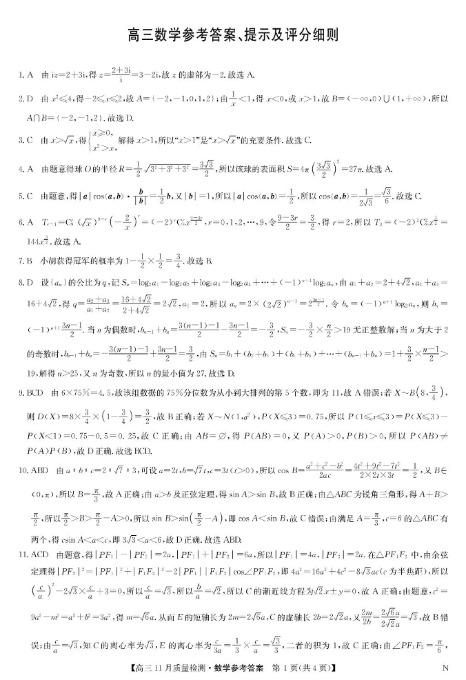 宜春市十校协作体2025~2026学年高三(上)第一次联考 数学答案.pdf