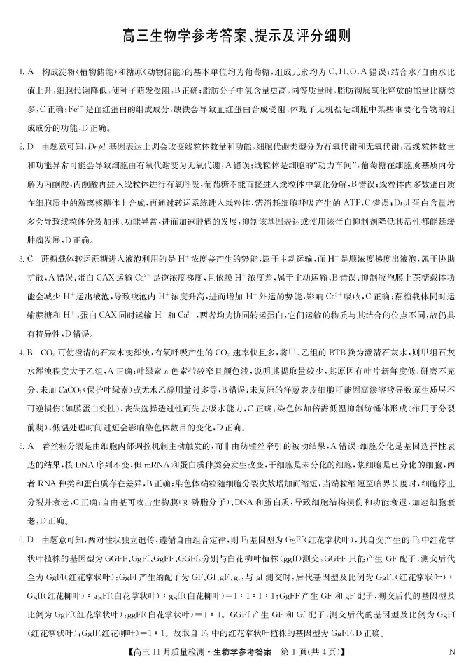 宜春市十校协作体2025~2026学年高三(上)第一次联考 生物答案.pdf