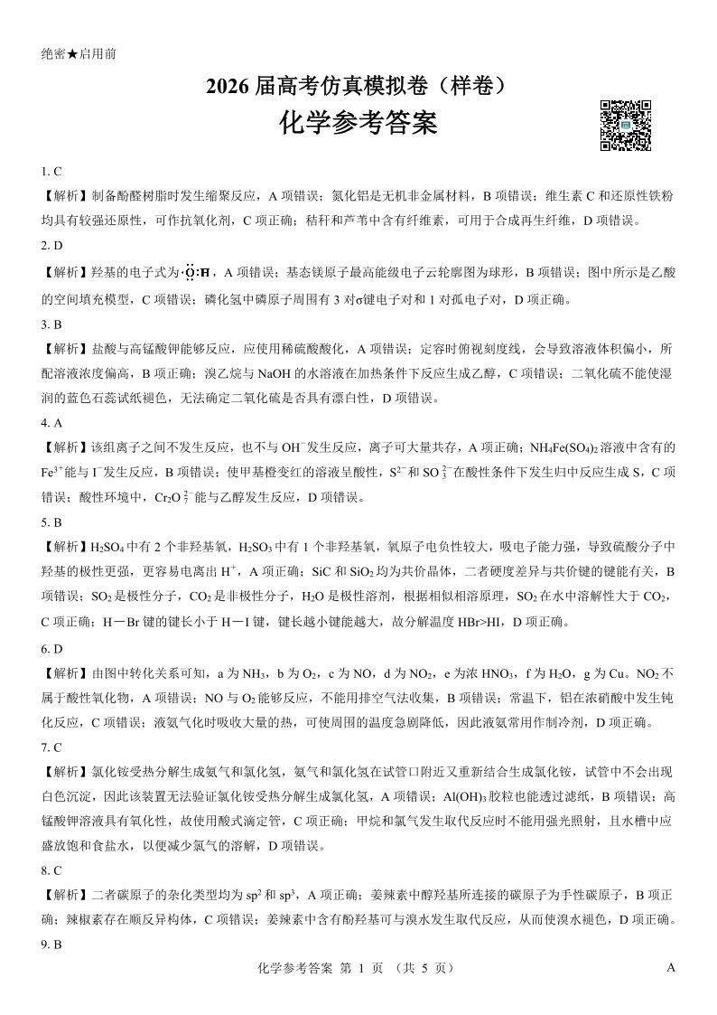 名校教研联盟 2026参考答案-化学.pdf