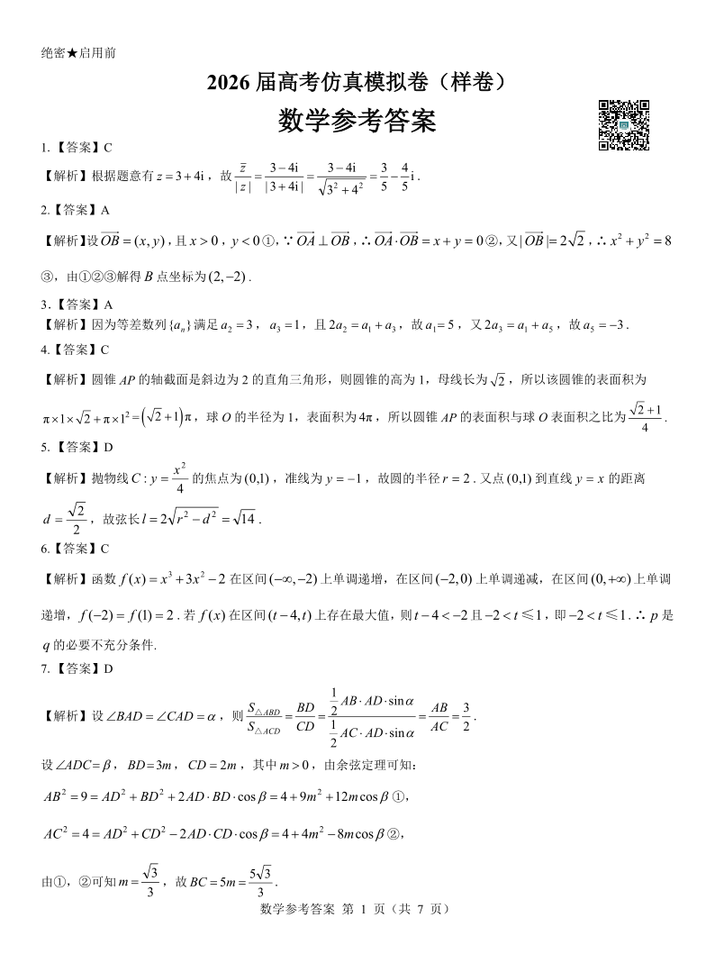 名校教研联盟 2026参考答案-数学.pdf