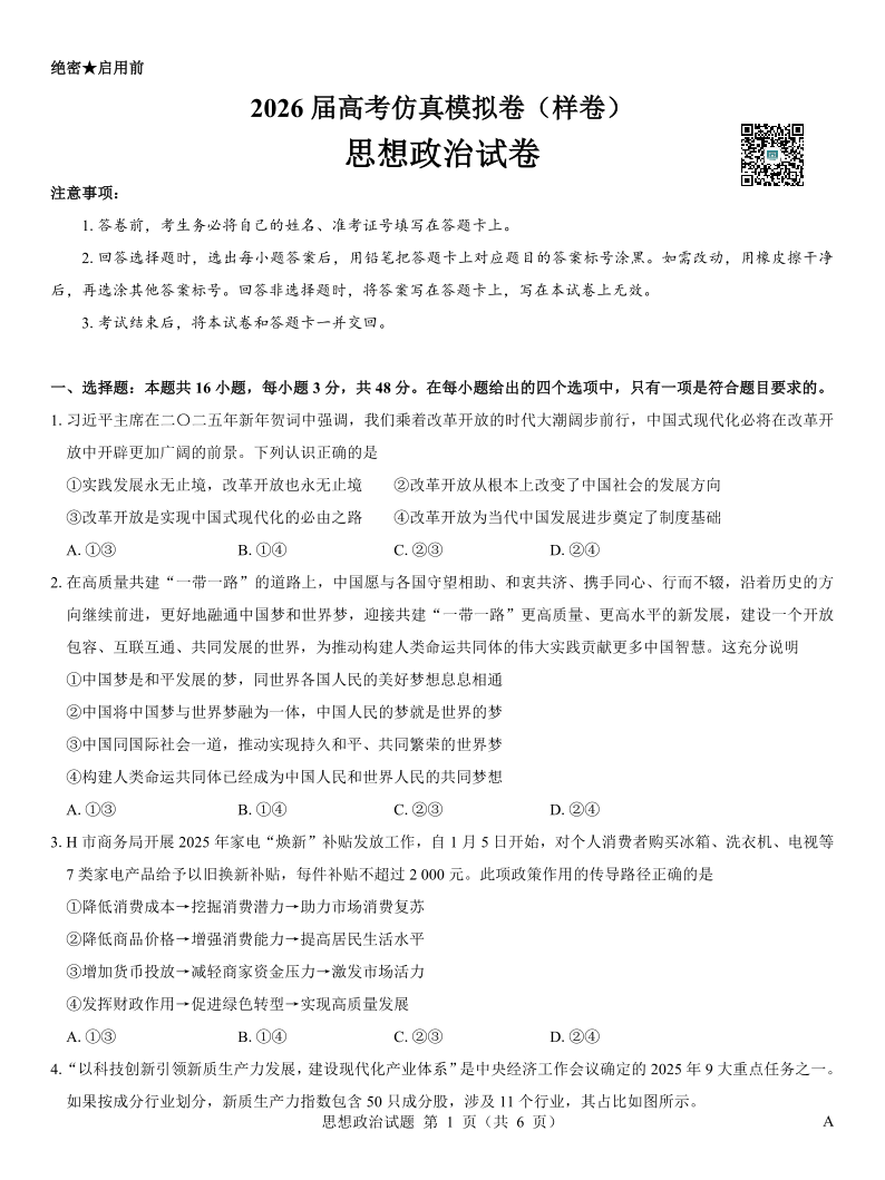 名校教研联盟 2026样卷-政治.pdf