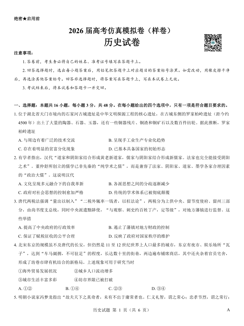 名校教研联盟 2026样卷-历史.pdf