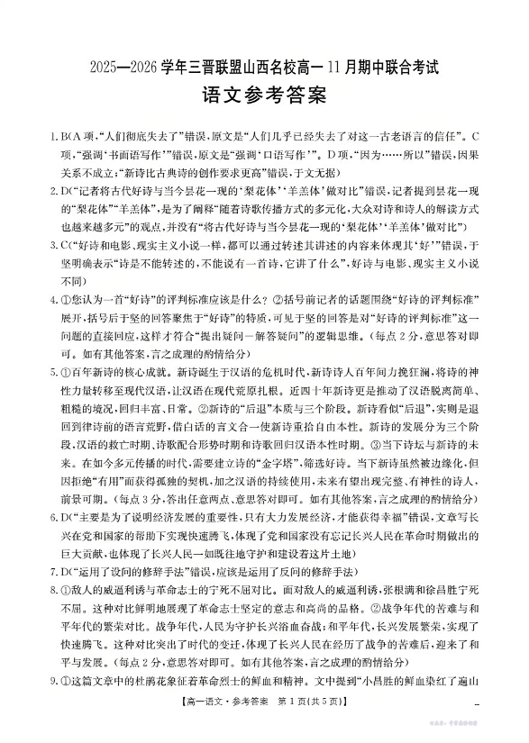 山西省三晋联盟山西名校2025-2026学年高一上学期11月期中联合考试 语文答案.pdf