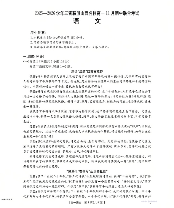 山西省三晋联盟山西名校2025-2026学年高一上学期11月期中联合考试 语文.pdf