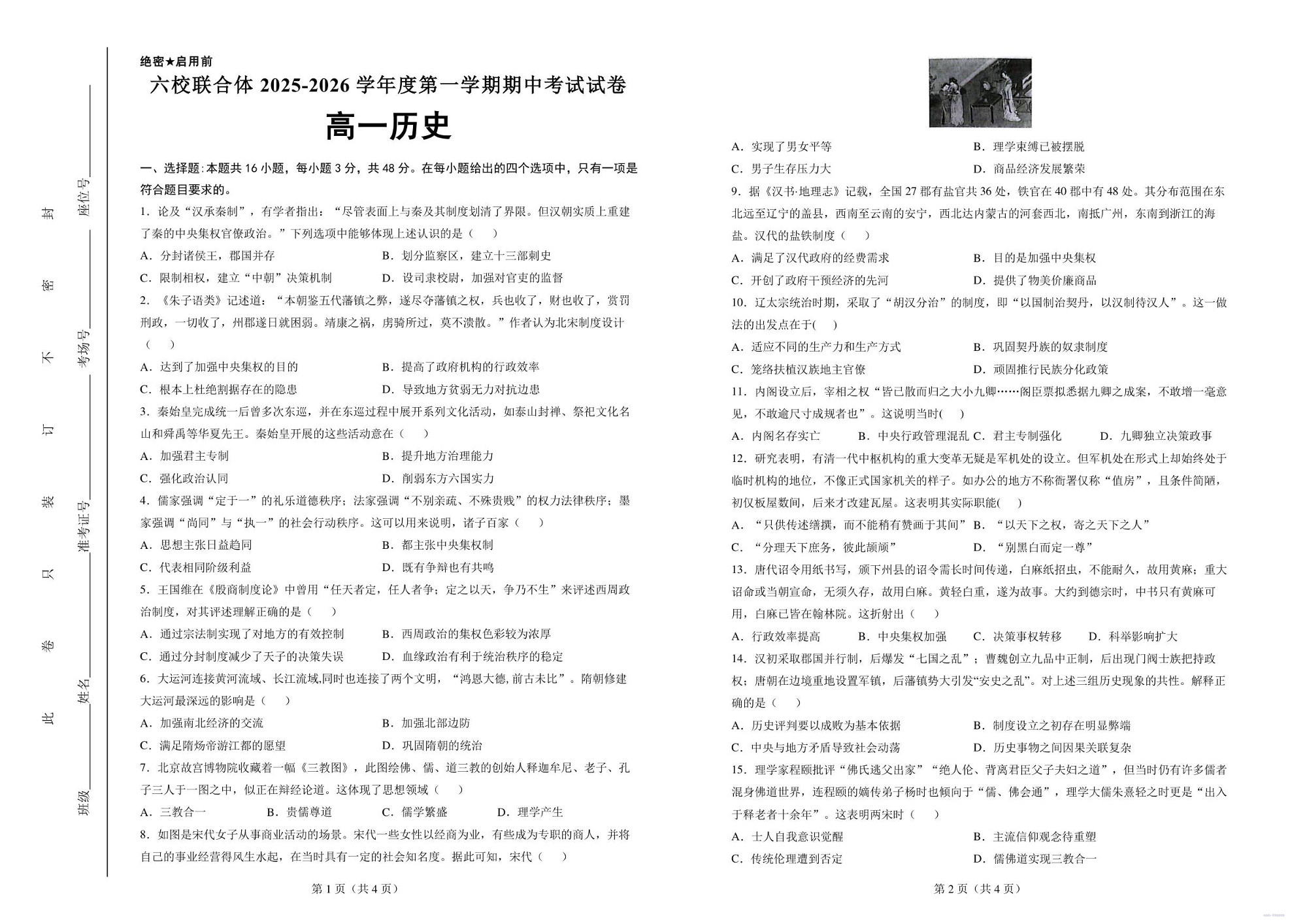六校联合体2025-2026学年度第一学期期中考试试卷-高一历史.pdf