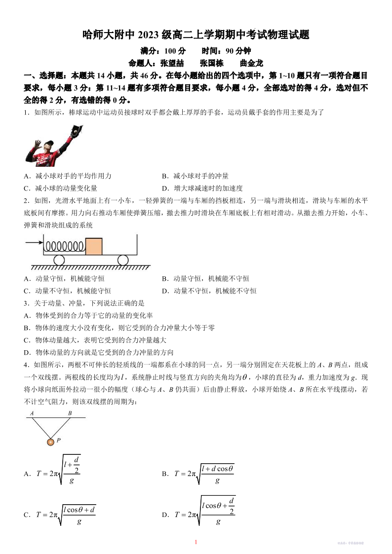 物理-黑龙江省哈尔滨师范大学附属中学2024-2025学年高二上学期期中考试.pdf